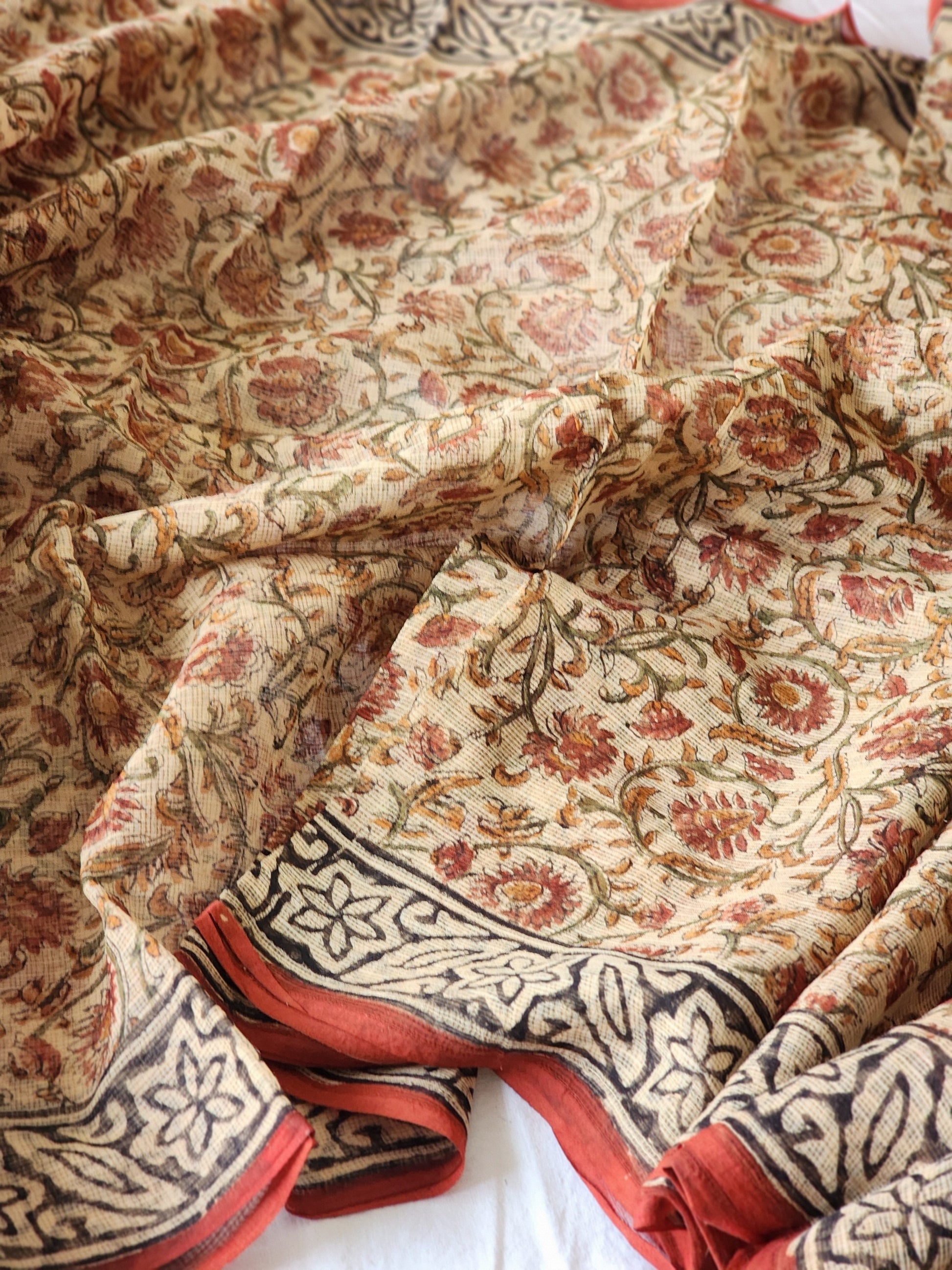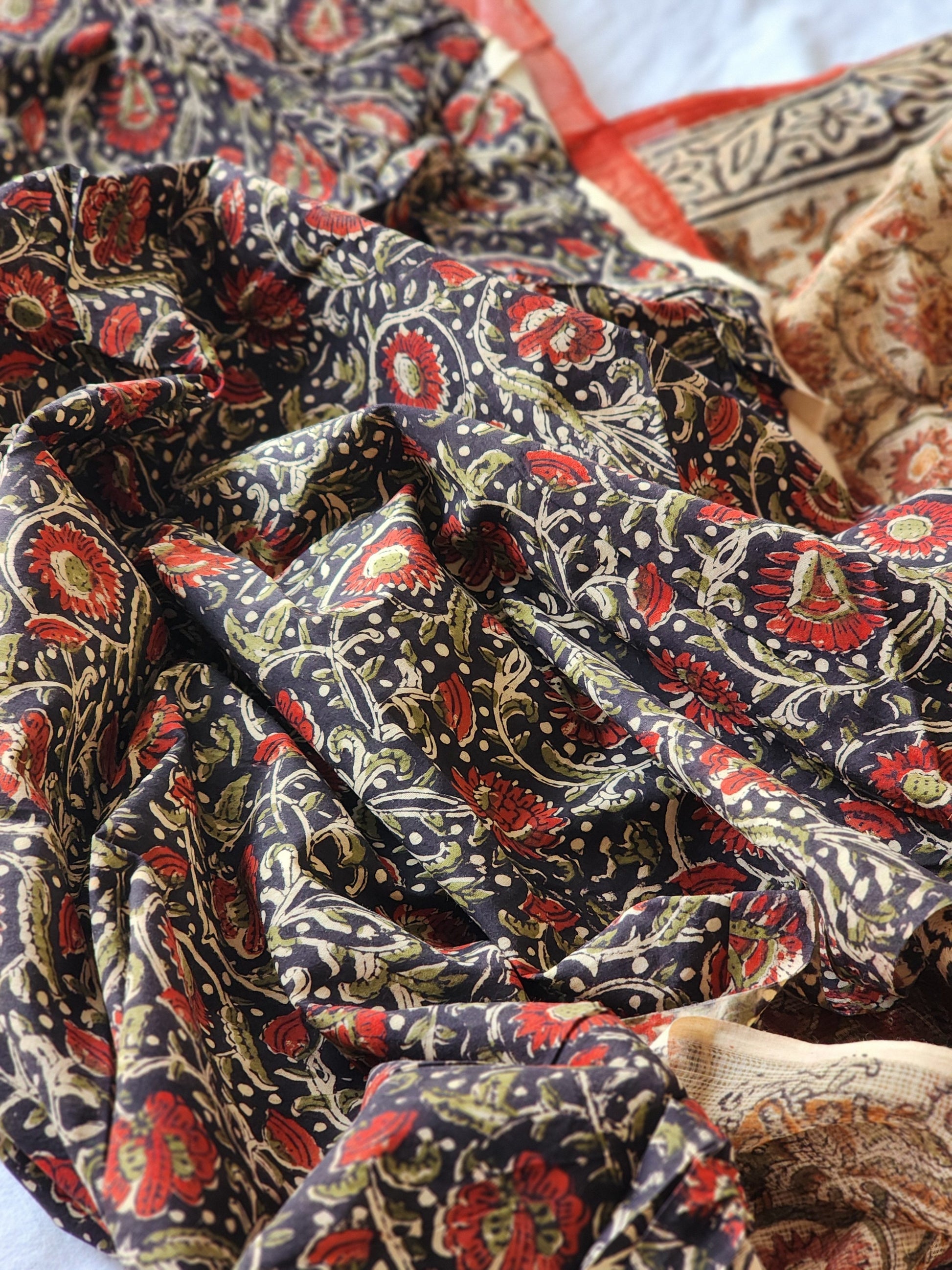 Lightweight and breezy, this Kota handblock printed saree blends traditional artistry with everyday elegance. Adorned with intricate handblock motifs, it’s perfect for office wear, casual outings, or festive gatherings—effortlessly stylish and comfortable.
