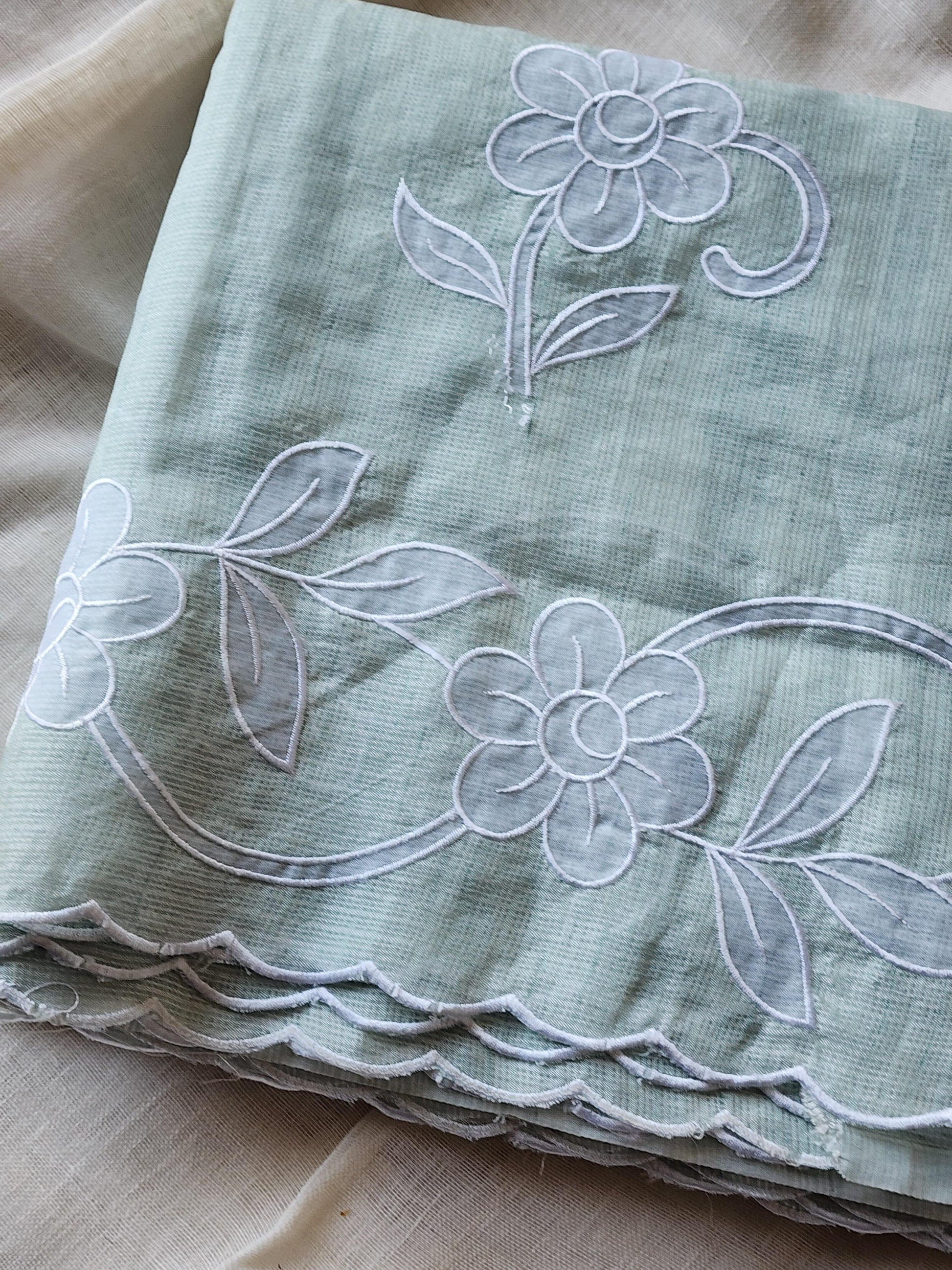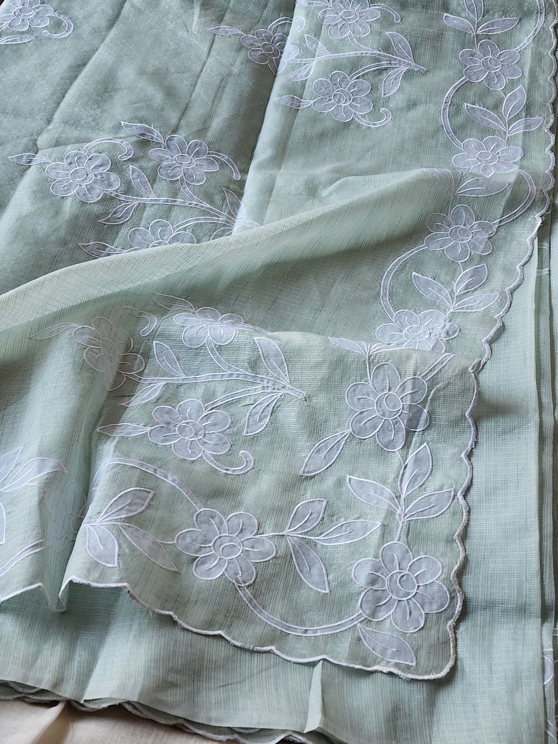 Elevate your everyday elegance with our Kota Silk Saree featuring delicate floral embroidery and a beautifully detailed scallop border. Lightweight, airy, and effortlessly graceful — perfect for both daywear and special occasions.