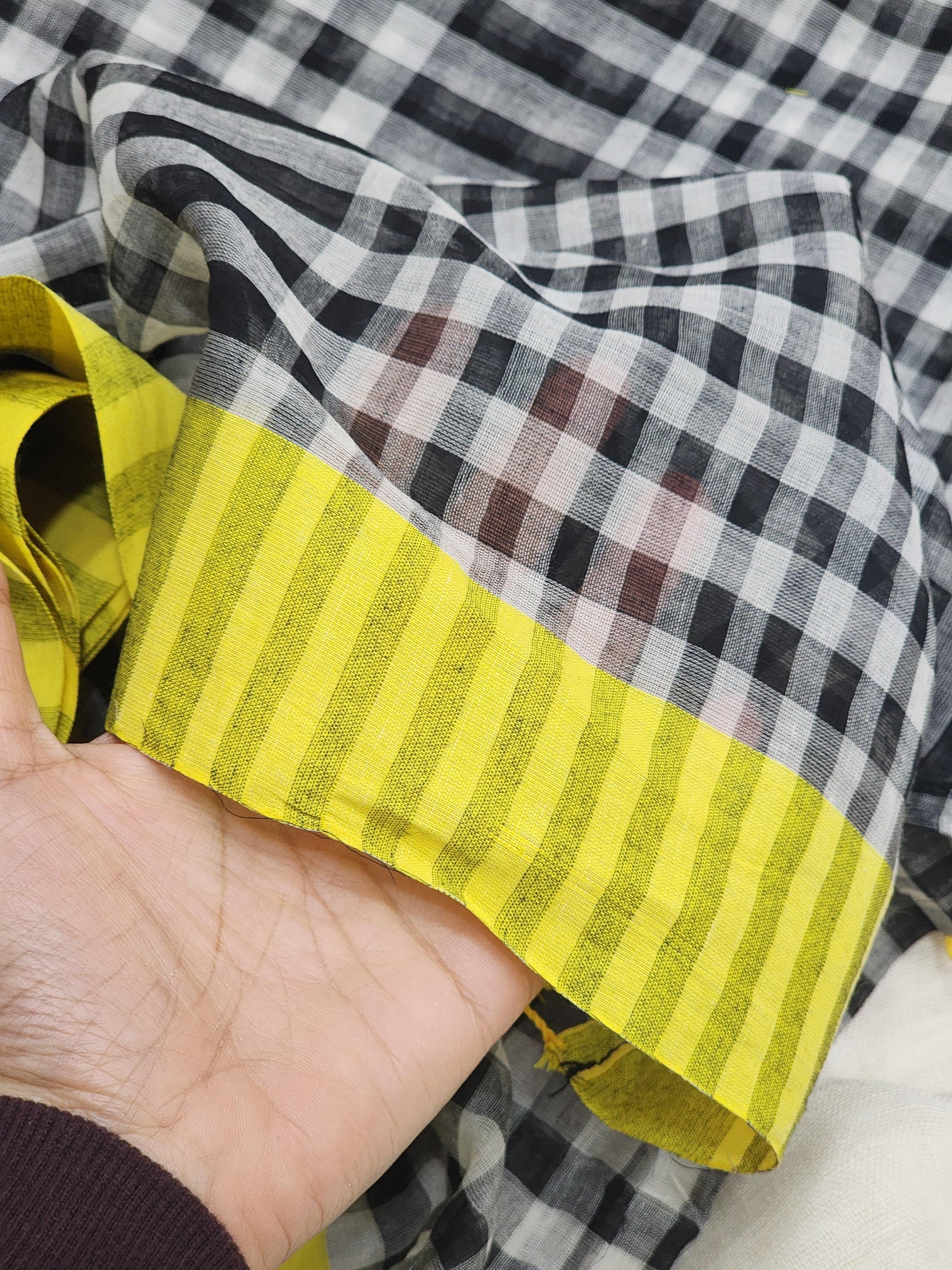 Step into everyday elegance with our Checkered Handloom Saree, crafted from premium 100*100 count pure cotton. Known for its buttery-soft texture and breathable comfort, this saree is perfect for long workdays or relaxed outings. The classic checks are meticulously woven by skilled artisans, creating a graceful blend of traditional charm and modern simplicity.