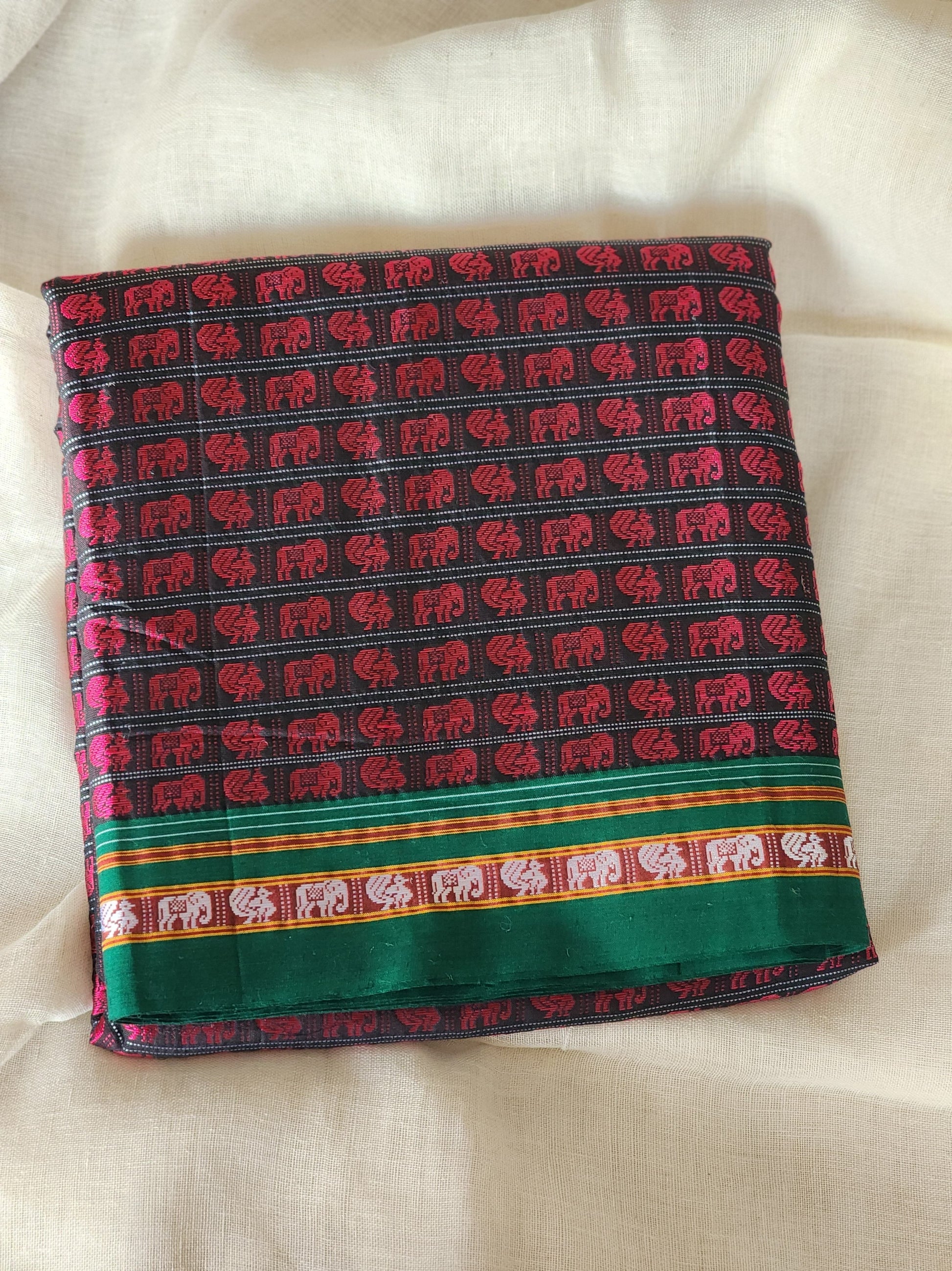 Woven with traditional Khun craftsmanship, these sarees showcase peacock and elephant motifs spread across the fabric, symbolising grace and strength. A perfect blend of culture, artistry, and everyday elegance.