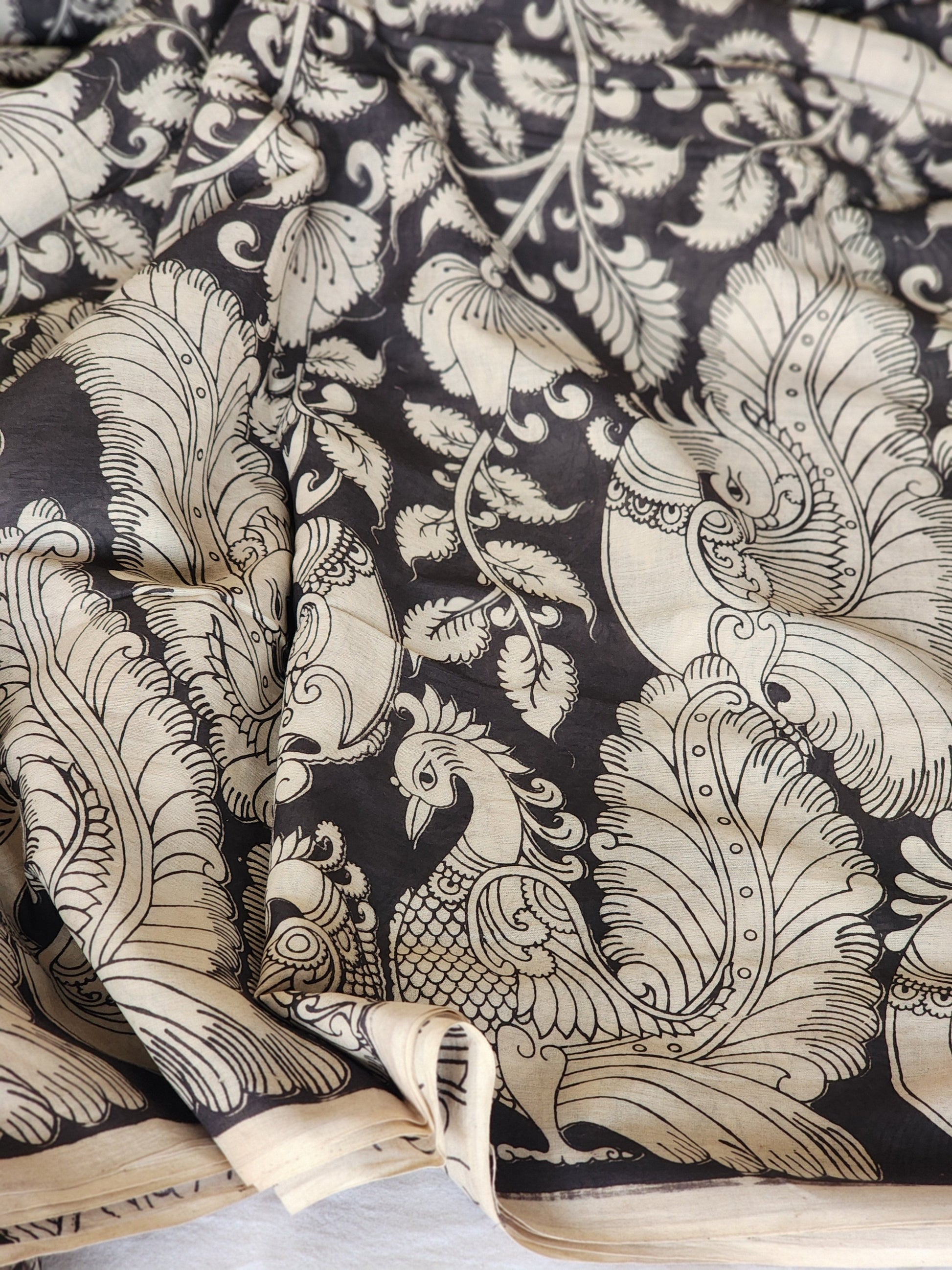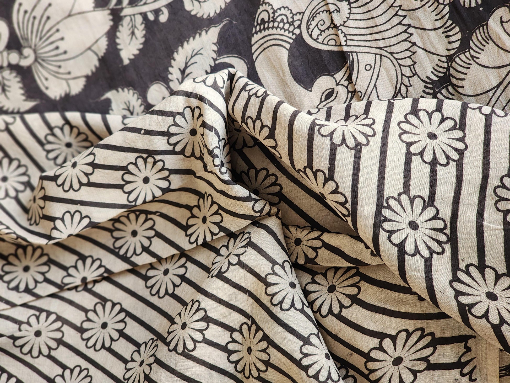 Immerse yourself in the captivating world of Kalamkari artistry with our cotton saree. Each inch of this saree showcases the meticulous skill and dedication of our weavers, ensuring you own a piece of wearable art.