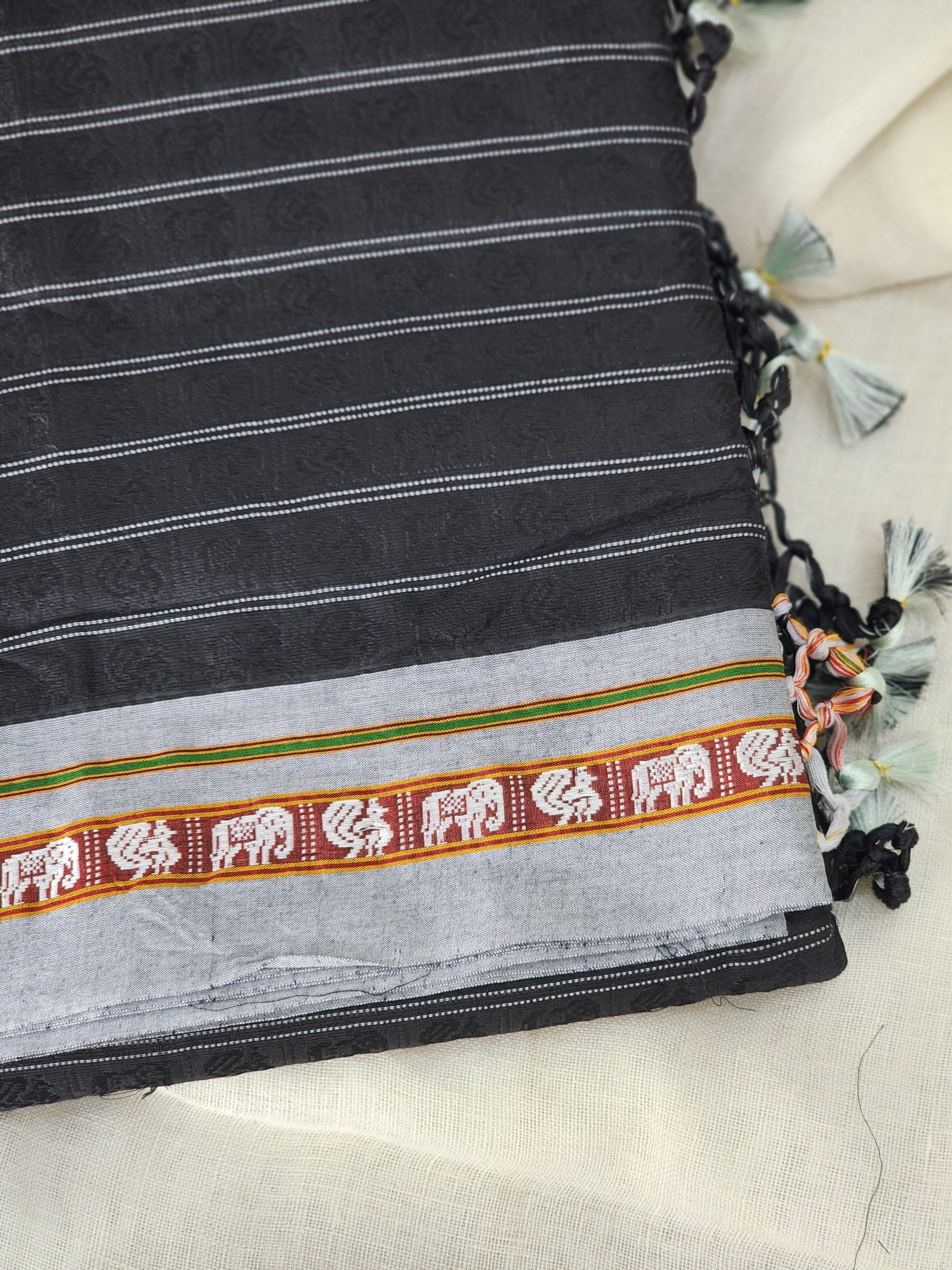 Woven with traditional Khun craftsmanship, these sarees showcase peacock and elephant motifs spread across the fabric, symbolising grace and strength. A perfect blend of culture, artistry, and everyday elegance.