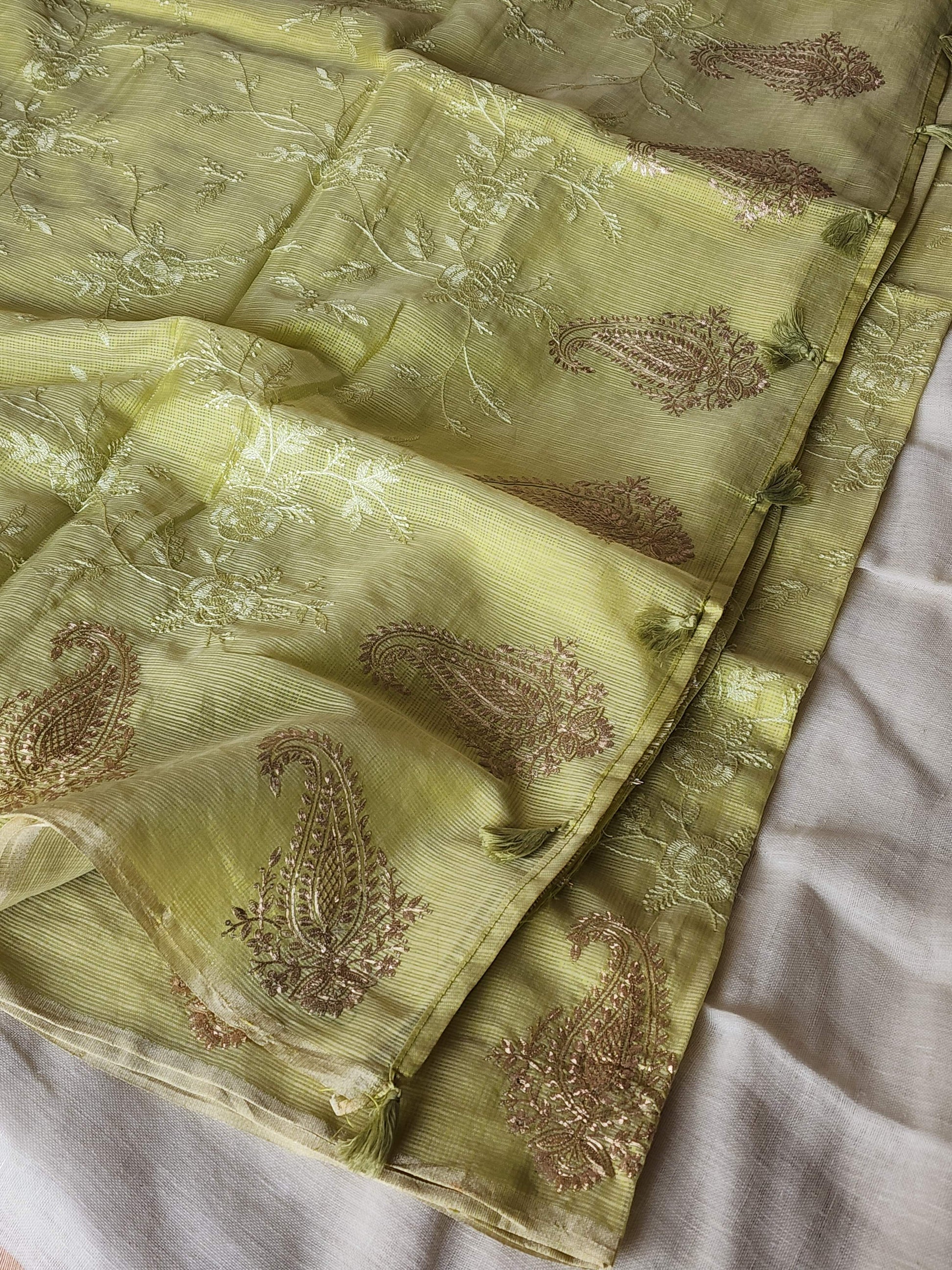 Step into elegance with our Kota Embroidered Sarees, crafted from breathable and lightweight fabric that ensures a graceful drape. Adorned with intricate embroidery, these sarees blend traditional craftsmanship with modern sophistication, making them perfect for festive occasions, office wear, and evening gatherings.