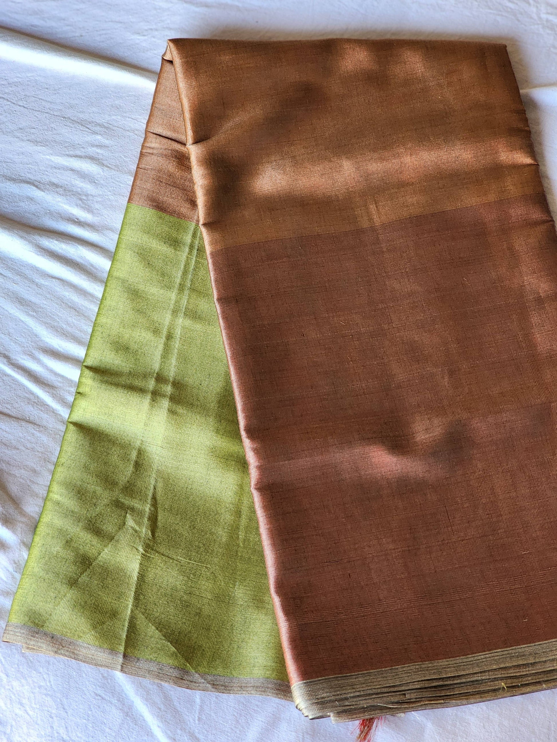 Shimmering with every fold, this Tissue Saree blends tradition with timeless charm. Lightweight yet regal, it drapes beautifully and adds a soft, radiant glow — perfect for festive celebrations and grand occasions.