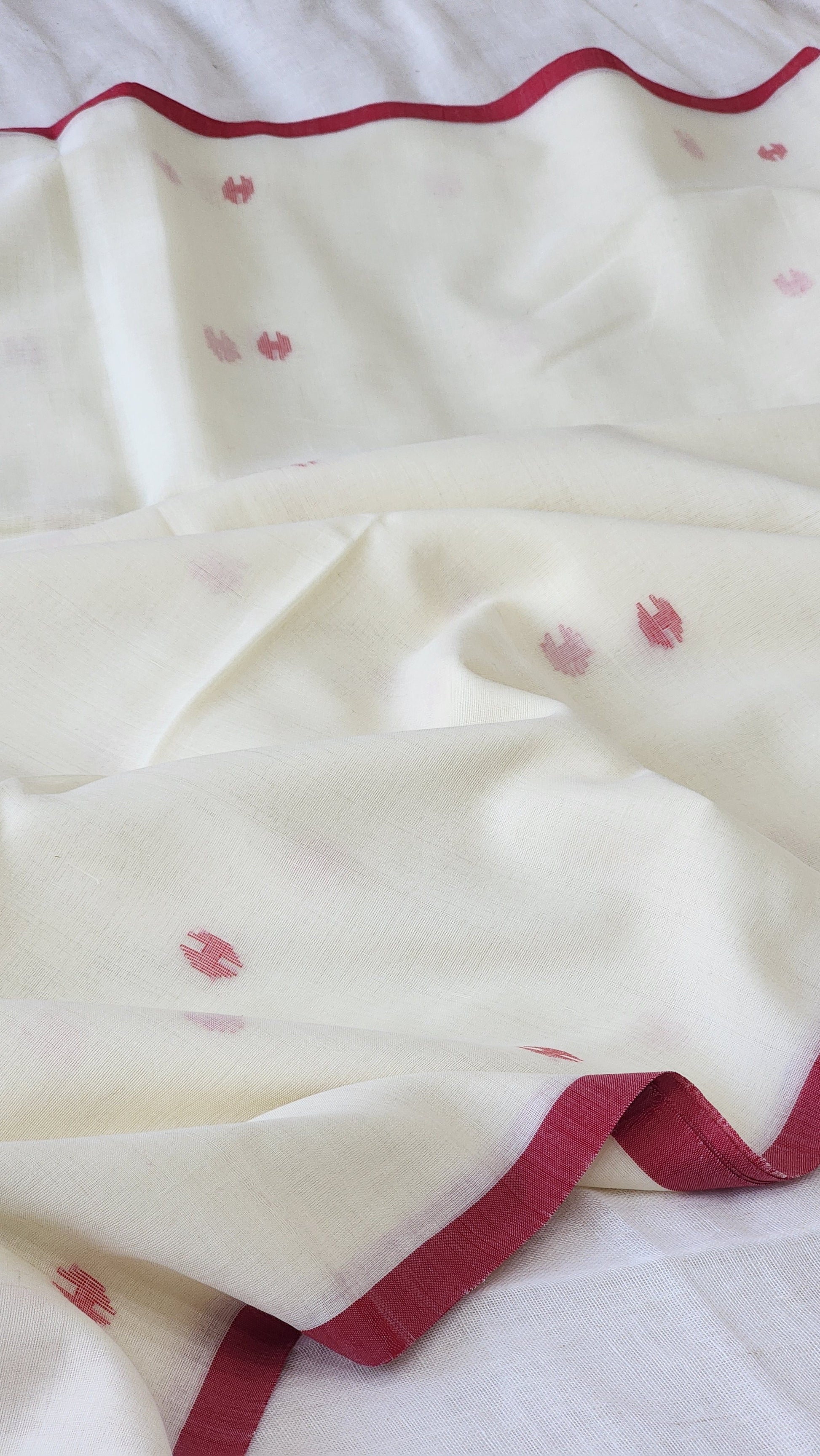Elevate your style with our exquisite handloom cotton Jamdani sarees. Each piece is meticulously crafted by skilled artisans, blending traditional techniques with contemporary designs. Lightweight and luxurious, these cotton sarees are perfect for any occasion, adding a touch of grace and sophistication to your wardrobe.