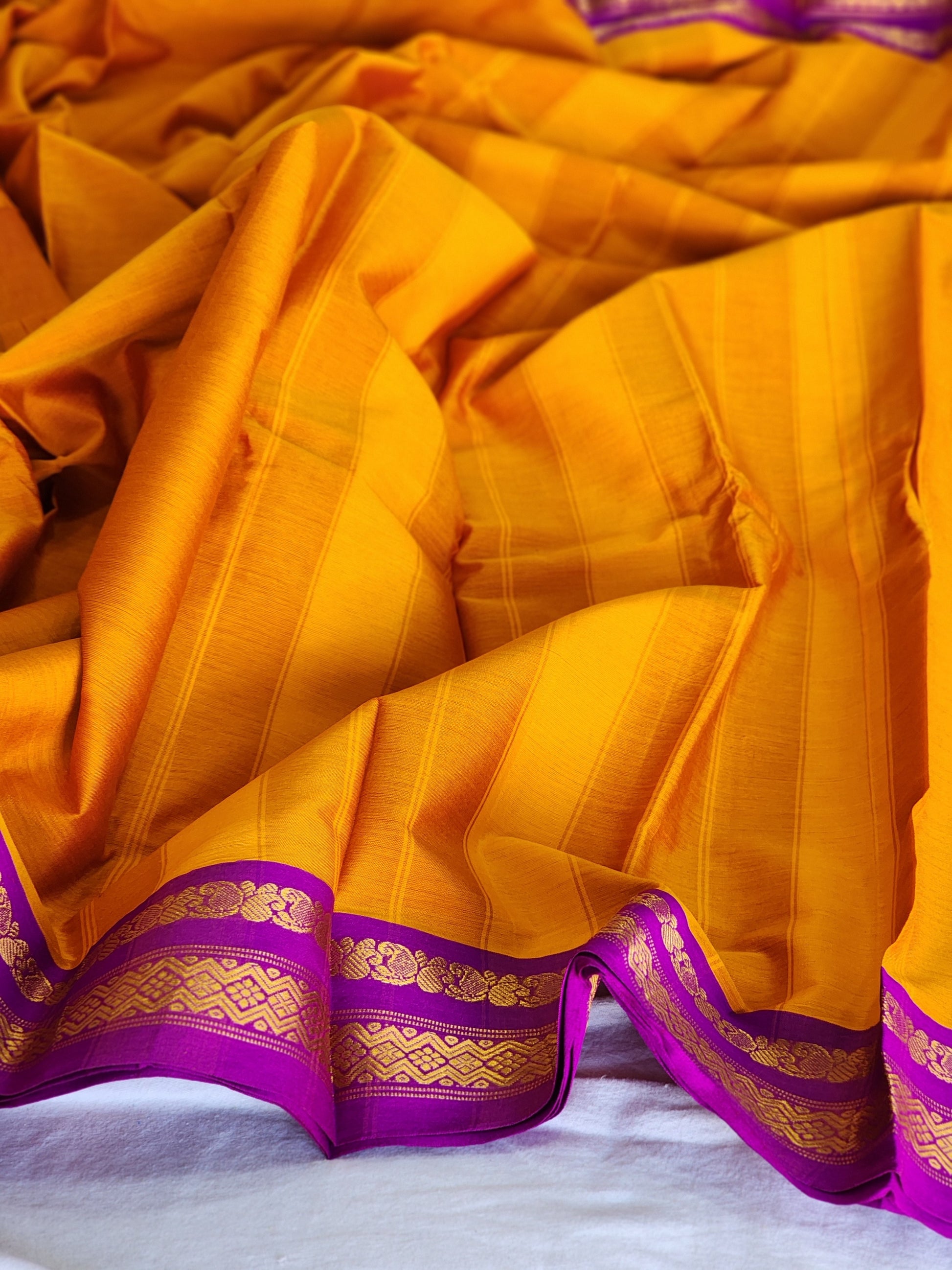 Handwoven to perfection, this Gadwal silk cotton saree beautifully blends the sheen of silk with the softness of cotton. Its rich texture, intricate zari detailing, and elegant drape make it perfect for festive occasions or special gatherings. A timeless piece that reflects grace, comfort, and the charm of traditional craftsmanship.