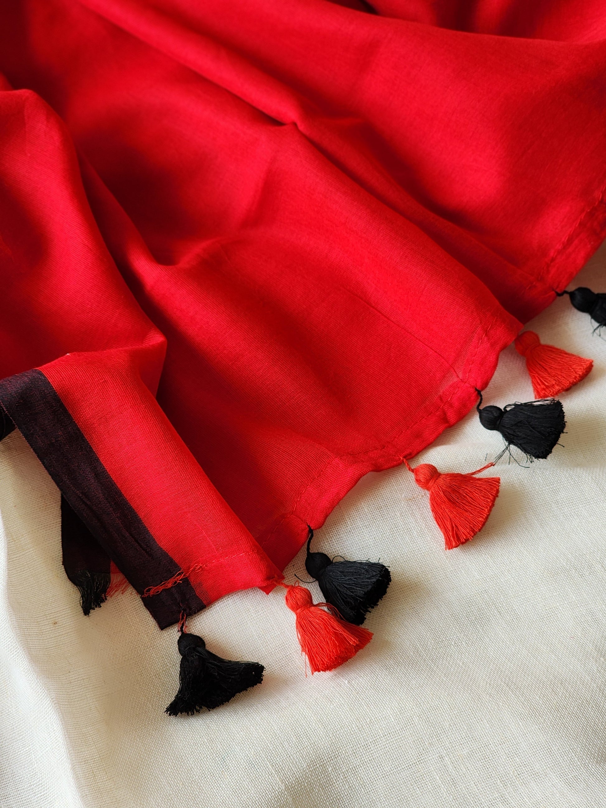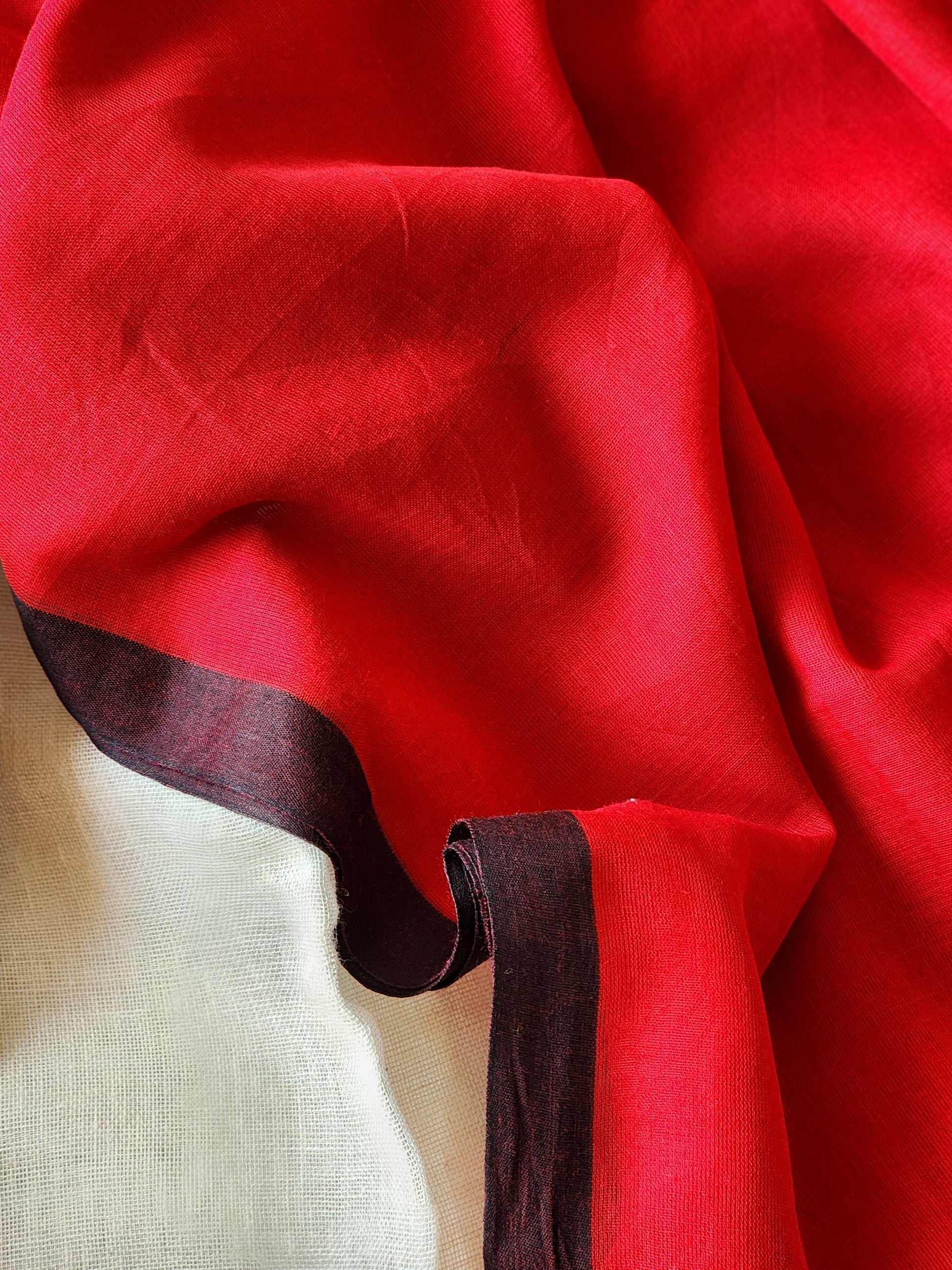 Red mulmul cotton saree