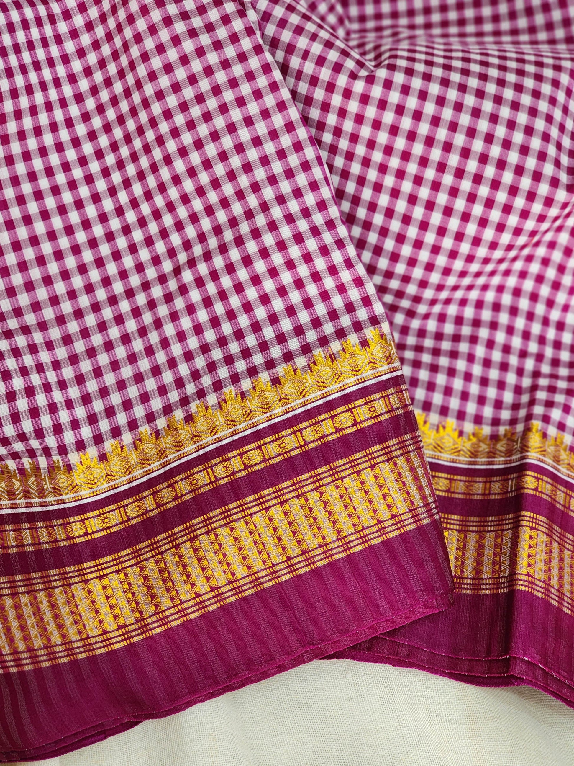 Indulge in the timeless charm of Karnataka's cultural heritage with our ilkal sarees. Handmade with love, these cotton silk sarees feature a unique checkered pattern, showcasing the skillful artistry of our weavers.