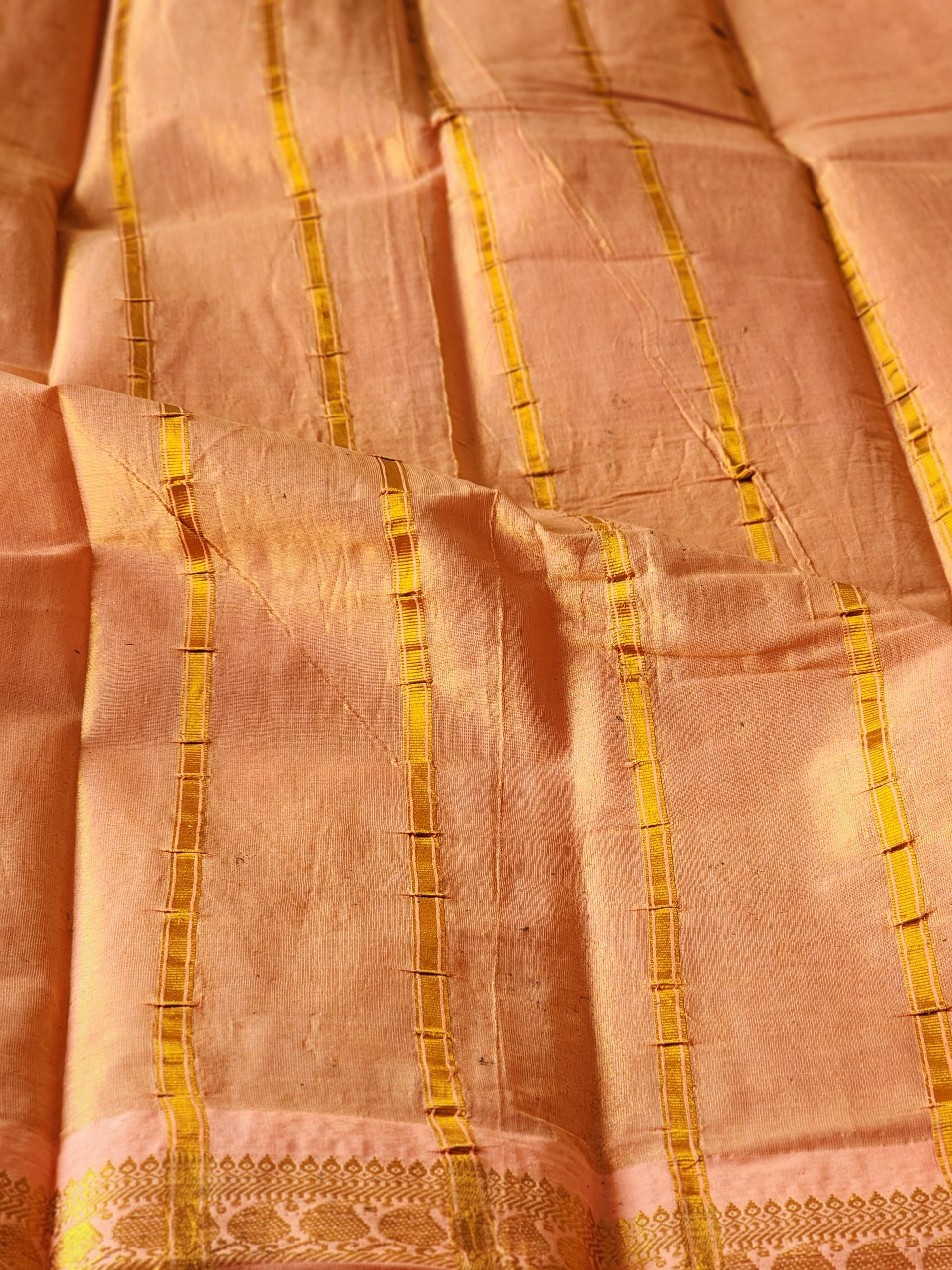 Immerse yourself in the rich tradition of Sungudi craft with our cotton tissue saree. Every fold reflects the dedication of skilled artisans, blending gentle comfort with heritage to give you a timeless touch of elegance.