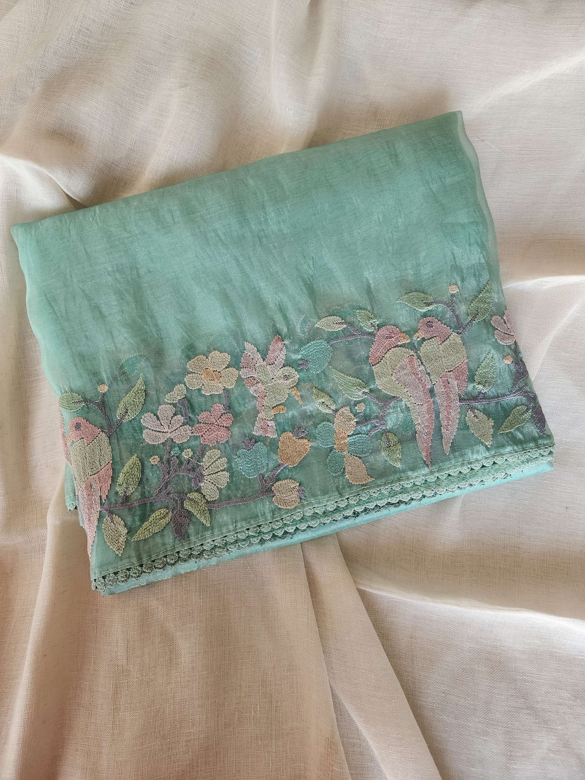 Sea Green Glass Tissue Saree